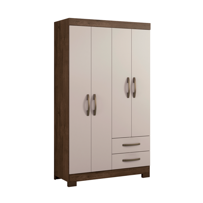 GUARDA ROUPA CASAL 2P 4GAV 5PRAT RIVA COM 1P ESPELHO E PES CINAMON/OFF WHITE