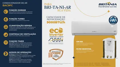 Ar-Condicionado Split Britânia Eco Inverter 9000 BTUs – BAC9FC – Branco – 220V