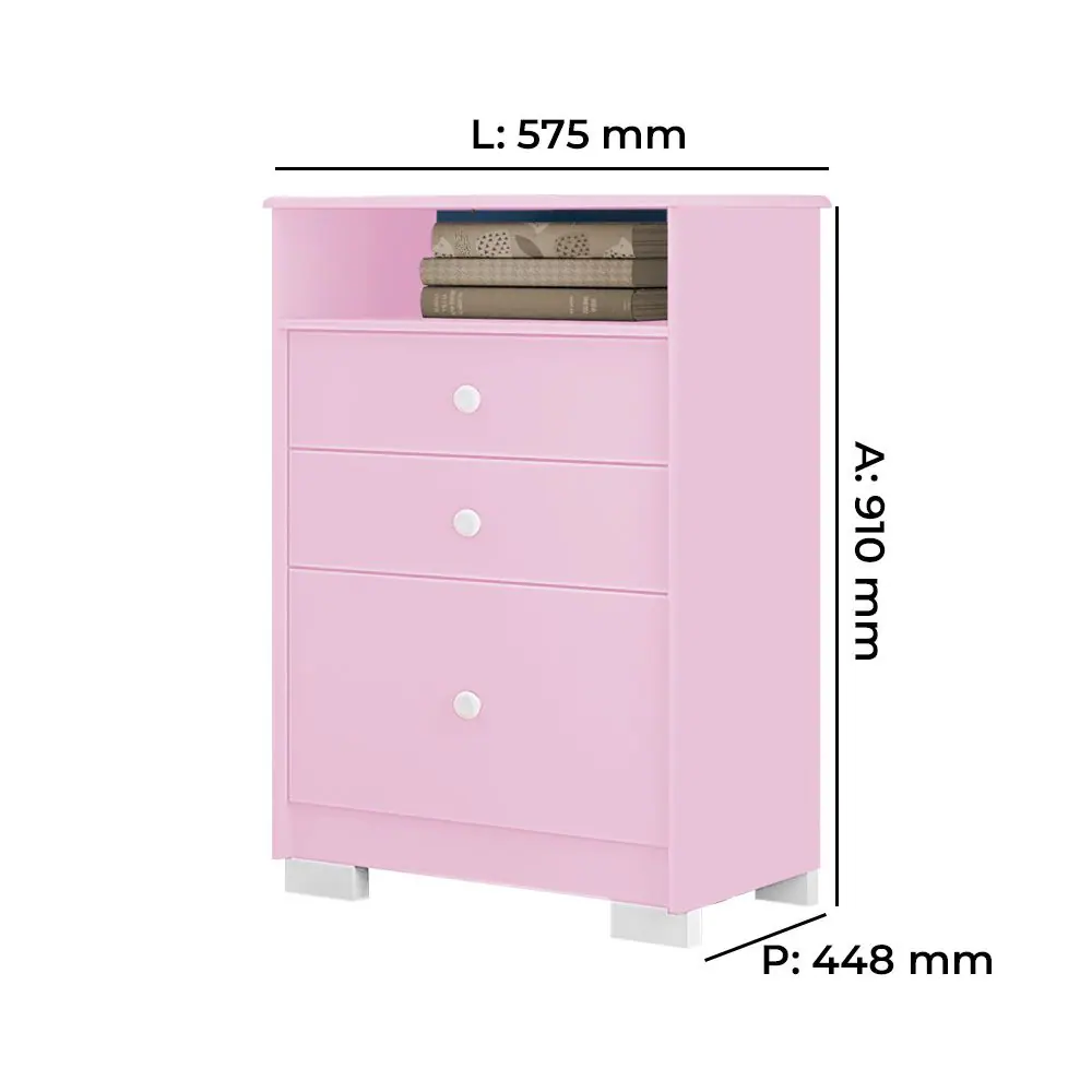 1 Cômoda Infantil Tuboarte Magia e kit de Pés
