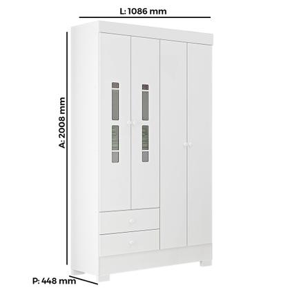 Guarda Roupas Infantil Tuboarte Turquesa 100% MDF 4 Portas 2 gavetas e Kit de Pés